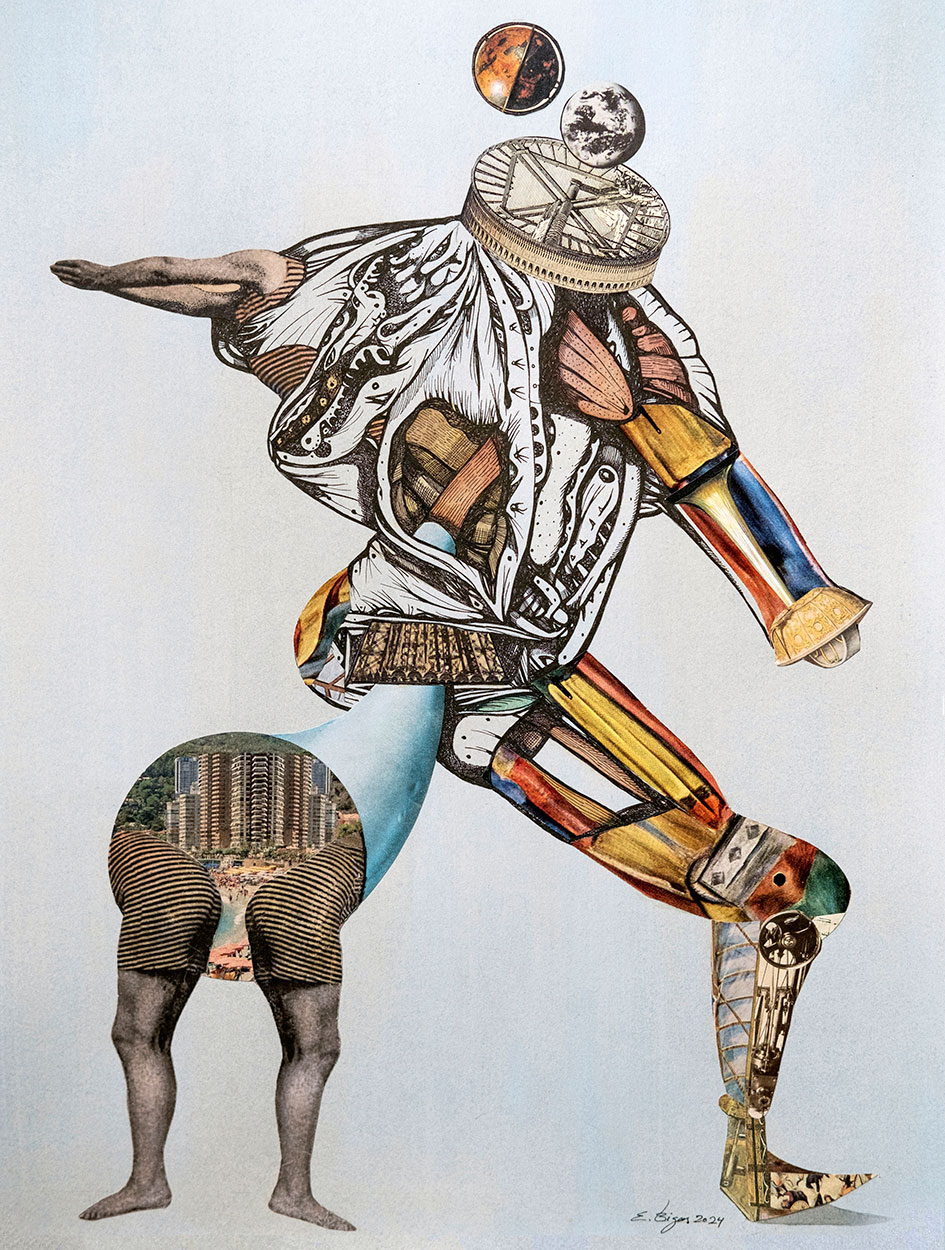 Eduard Bigas, Letzte Momentaufnahme der europäischen Intelligenz, 31x41cm, collage, tea, ink and watercolour, 2025.