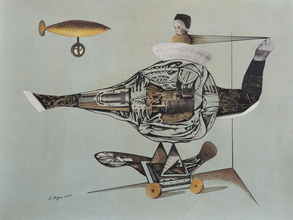 Eduard Bigas, „Seeds of collapse“, 31 x 41 cm, collage, watercolour and ink on paper, 2024