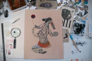 Eduard Bigas, „Seeds of collapse“, 31 x 41 cm, collage, watercolour and ink on paper, 2024